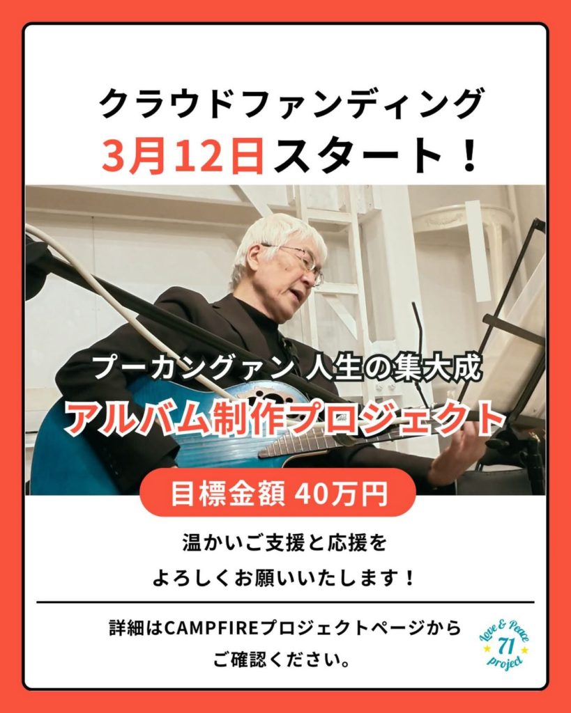 プーカングァンが、46年間歌い続けてきた「Love & Peace」を込めた人生の集大成アルバムを制作します。